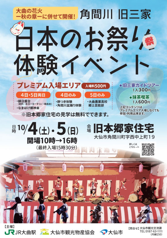 角間川 旧三家 日本のお祭り 体験イベント | 大仙市・旧本郷家住宅 | 2025/10/04(土)~2025/10/05(日) |
