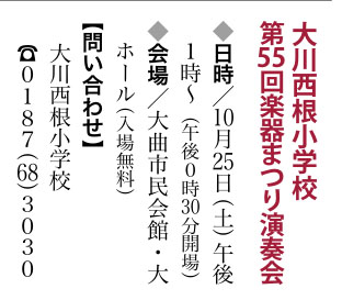 大川西根小学校 楽器まつり演奏会 | 大仙市・大曲市民会館 | 2025/10/25(土) |