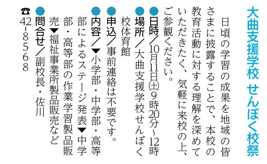 ちいきみんなのきょうわ祭 | 大仙市・協和市民センター (和ピア) | 2025/10/04(土)~2025/10/05(日) |