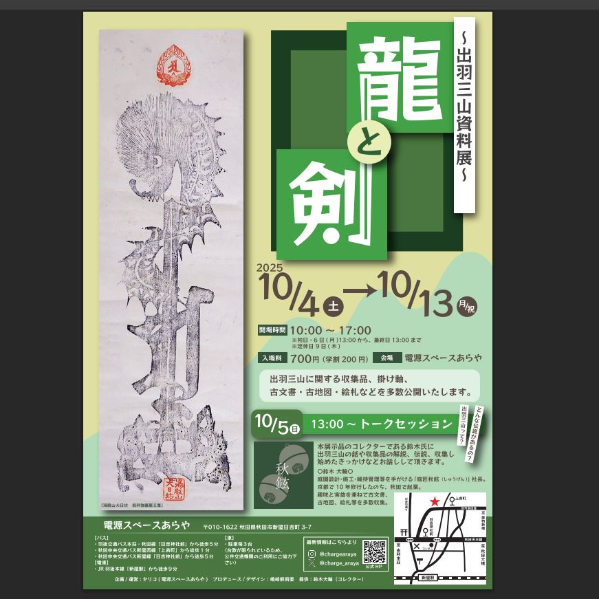 龍と剣 ~出羽三山資料展~ | 秋田市・電源スペースあらや | 2025/10/04(土)~2025/10/13(月) |