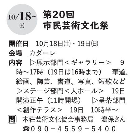 潟上市文化祭 | 潟上市・かたりあん、 天王館、潟上市図書館 | 2025/10/25(土)~2025/10/26(日) |