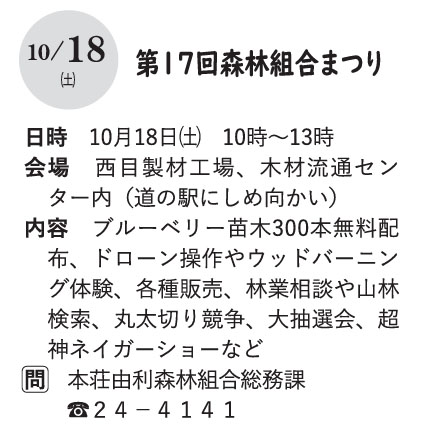 実りの秋! 輪い和い西目収穫まつり | 由利本荘市・ マックスバリュ新西目店西側空き地、 道の駅にしめ | 2025/10/19(日) |