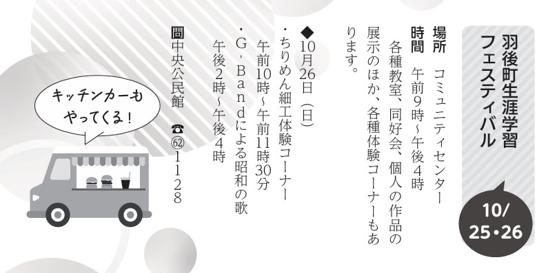 羽後町生涯学習フェスティバル | 羽後町・コミュニティセンター | 2025/10/25(土)~2025/10/26(日) |
