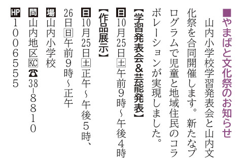 やまばと文化祭 | 横手市・山内小学校 | 2025/10/25(土) |