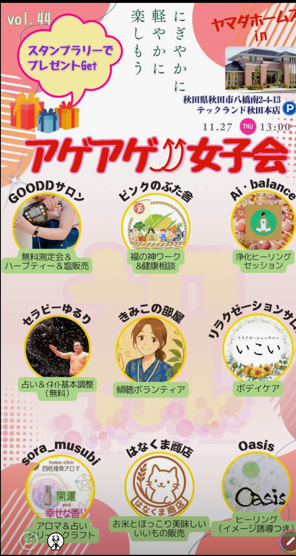 | アゲアゲ女子会 | 秋田市・ヤマダホームズ | 2025/11/27(木) |