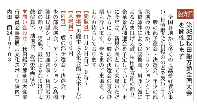 | 椿地区文化祭 | 男鹿市・椿コミセン | 2025/11/02(日) |