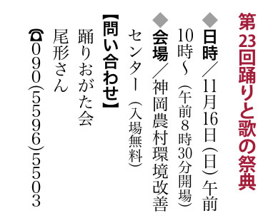 | 秋田市芸術祭 古典芸能のつどい | 秋田市・ あきた芸術劇場ミルハス | 2025/11/23(日) |