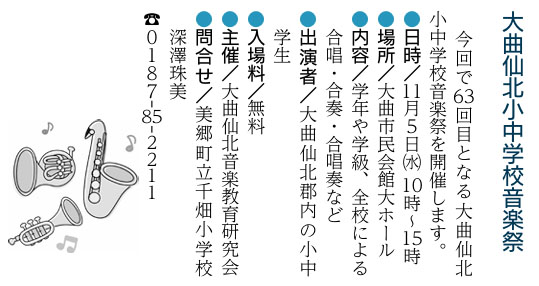 | 秋田市小学校器楽祭 | 秋田市・ あきた芸術劇場ミルハス | 2025/11/22(土) |