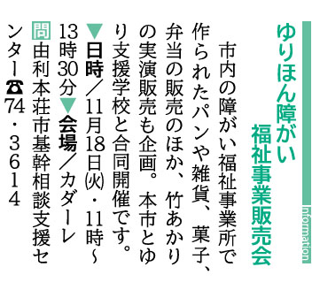 福祉事業販売会 | 由利本荘市・カダーレ | 2025/11/18(火) |