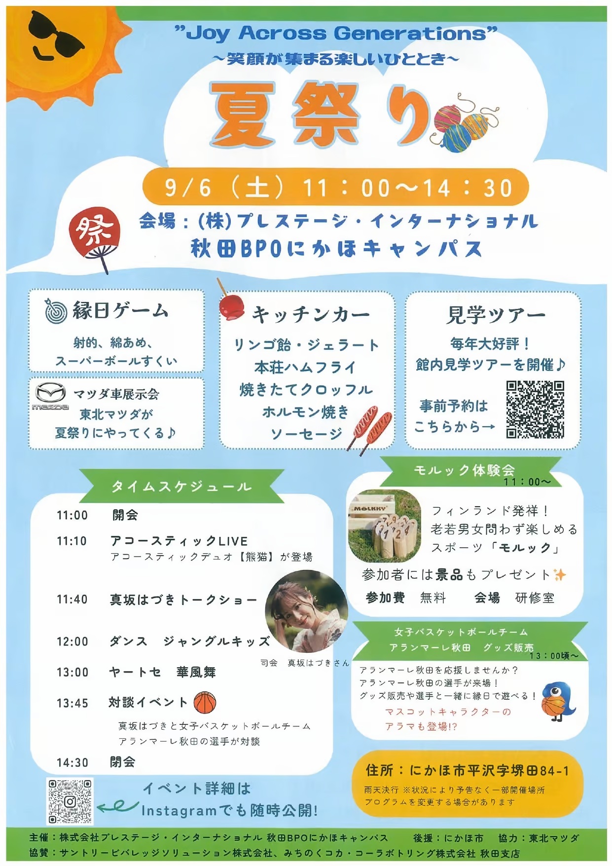 夏まつり | にかほ市・ 秋田BPOにかほキャンパス | 2025/09/06(土) |