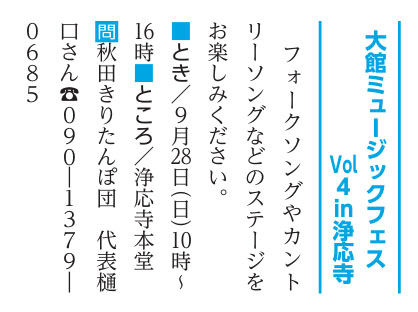大館ミュージックフェスin浄応寺 | 大館市・浄応寺本堂 | 2025/09/28(日) |