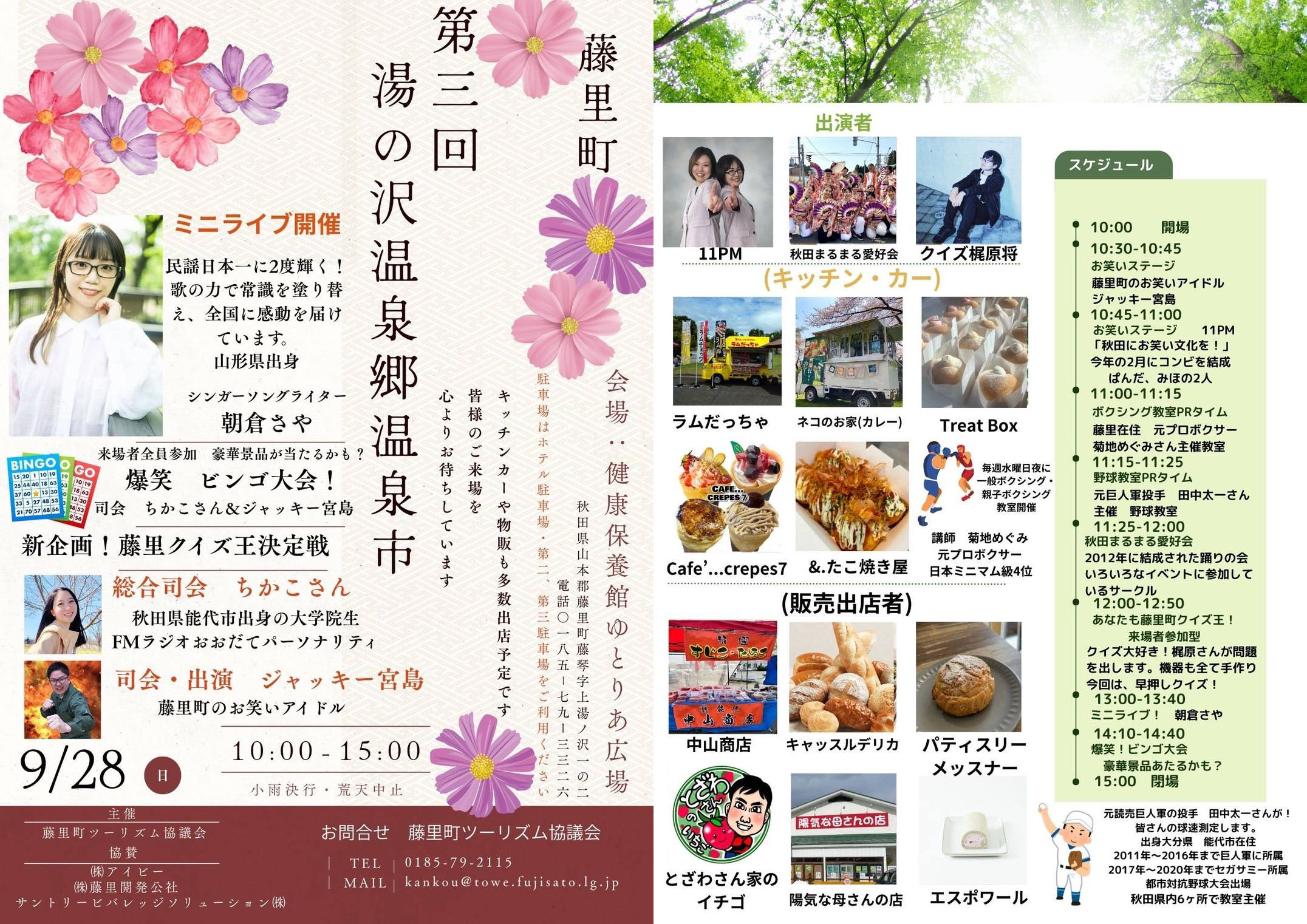 湯の沢温泉郷温泉市 | 藤里町・ 健康保養館ゆとりあ広場 | 2025/09/28(日) |