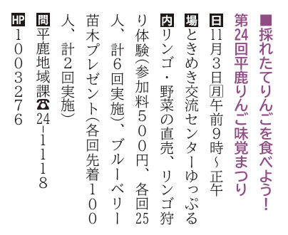 | 平鹿りんご味覚まつり | 横手市・ゆっぷる | 2025/11/03(月) |