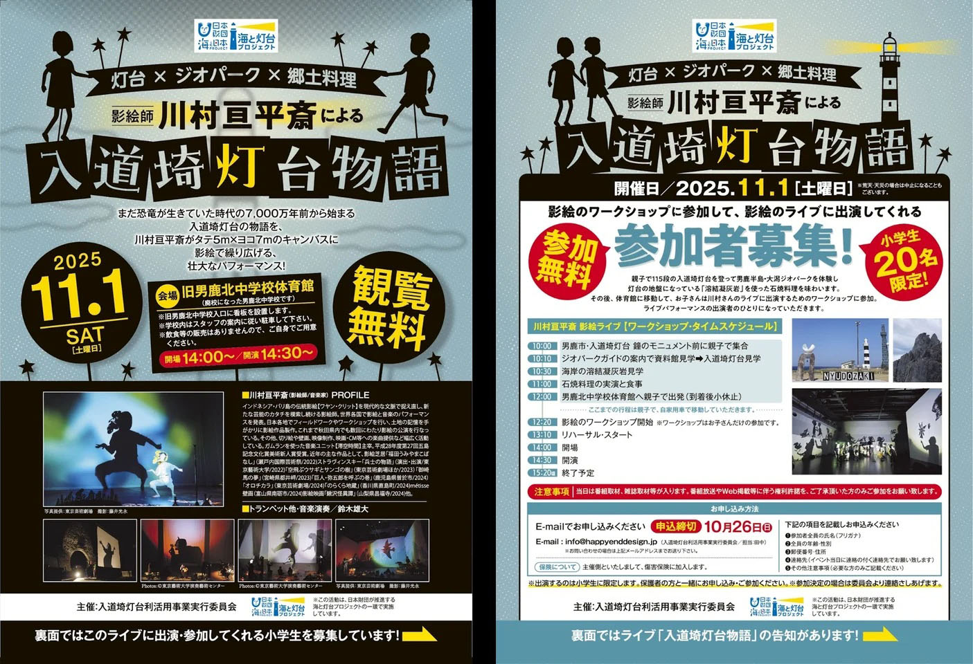 | 影絵師 川村亘平斎による 入道埼灯台物語 | 男鹿市・ 旧男鹿北中学校体育館 | 2025/11/01(土) |